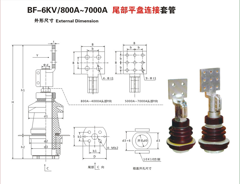 BF-6KV/800A~7000A尾部平盘连接变压器套管