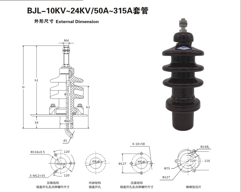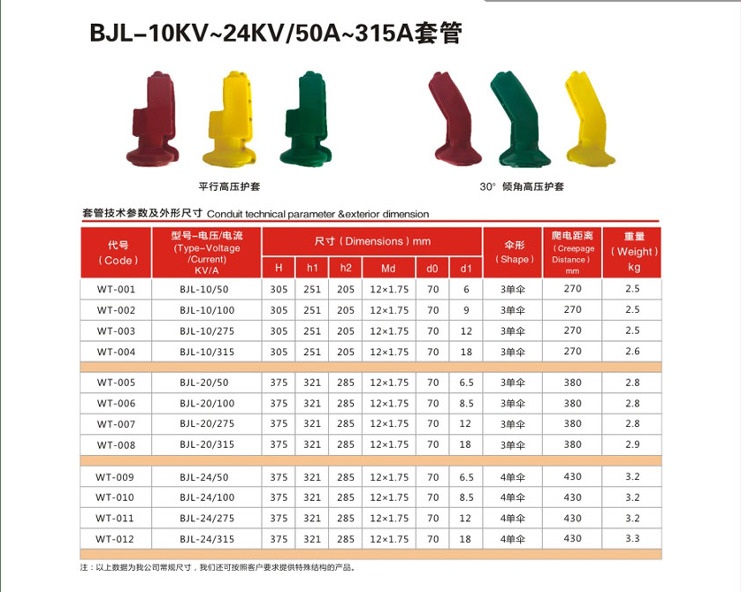 BJL-10KV~24KV/50A~315A变压器套管